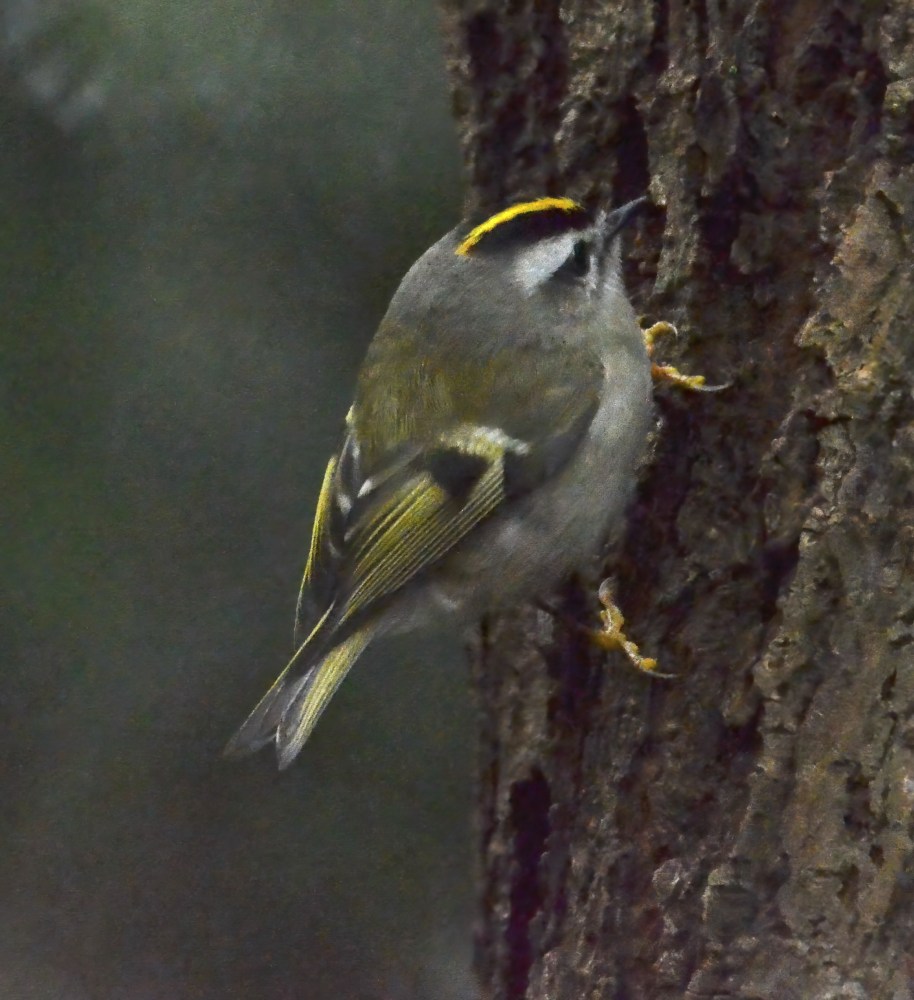 The usual Mallards, Canada Geese, and Wood Ducks were along the shore as we headed to the east, but further out on the lagoon we could see a couple of Common Merganser, and towards the fountain with its unlit Christmas Tree of lights were other ducks where we hoped to encounter the female Redhead that has been reported. Along the shore with the geese and ducks, several singleton Common Goldeneye, both male and female, swam past as we worked our way to the east end of the lagoon where we encountered another Anna’s Hummingbird and a group of over a dozen Golden-crowned Kinglet moving through the shrubs by the path. A little brown bird picking its way up a cedar trunk like a Creeper caught Noreen’s attention, and as it entered a clear stretch of the trunk it became apparent it was just a Pacific Wren gleaning like a Brown Creeper.