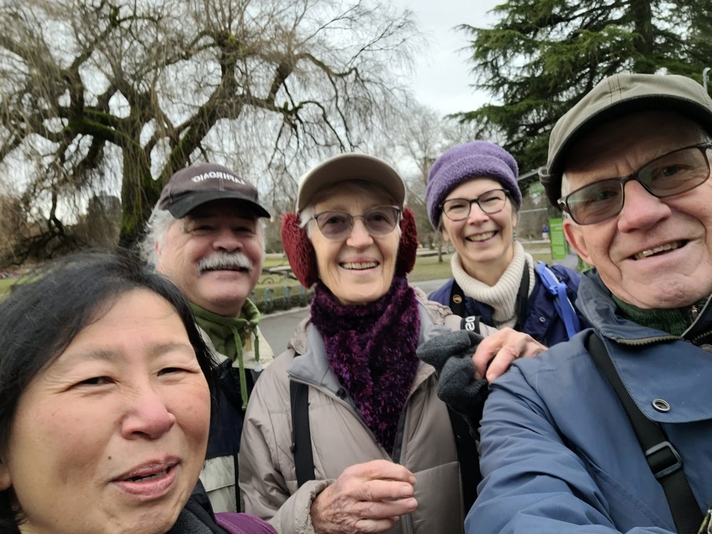 Just before the designated time of 9 AM, six of us convened at the Second Beach perking lot. It took Noreen and I about 55 minutes from Tsawwassen, and I must admit I certainly would not relish doing this as a daily commute. The parking pay station was a challenge, as the LCD back-lighting was not operating, and the screen was positioned for very short individuals. Glen resorted to his phone app, while the rest of us sorted through the choices more by feel than actual visual cues.