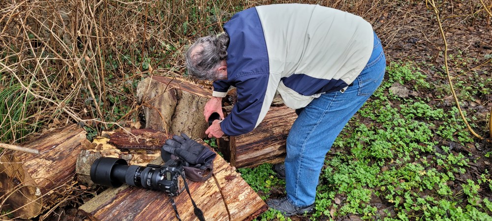 With the tip from Trevor, we found the rafts of Surf Scoters and Barrow’s Goldeneye as well as an Anna’s Hummingbird, and a Pacific Wren on the land side of the seawall. When we reached Third Beach a cluster of eight Black Oystercatchers could be seen at the far end on the only rock protruding above the high tide. We cut up to cross the road and head back through the trail that parallels the roadway where we first heard, then saw, another Anna’s Hummingbird, and heard a Common Raven, Bald Eagle, and distant Red-breasted Nuthatch as we moved past stumps displaying a variety of mushrooms, some looking much like tiny Oyster mushrooms whose size might have been compromised by the recent cold weather.