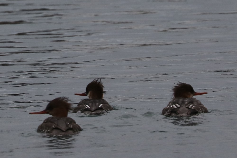Our next stop was the west side of the marina. In this calmer water there were Horned Grebes, Bufflehead, Scaup, Common Goldeneye, Red-breasted Mergansers and a Common Loon. An Anna’s Hummingbird put in a brief appearance, but there was no sign of Lorna’s Kingfisher.