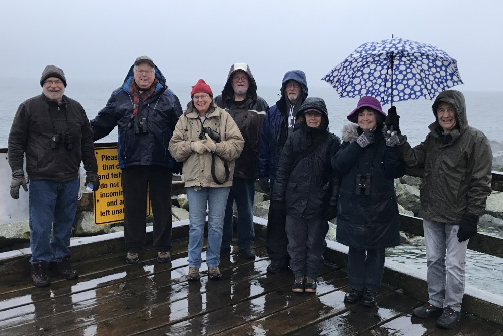 Nine hardy birders met at White Rock pier on a rainy morning – Bob, Mike, Dottie, Herb, Colin, Stephanie, Lorna, John and Terry. White-winged and Surf Scoters were diving for shellfish, and a large group of Bufflehead and some Scaup were also diving close to the pier. There were several Common Loons and a few Pelagic Cormorants. One Black Turnstone was playing hide and seek on the breakwater, and another one was walking on the pier with a group of Rock Doves.