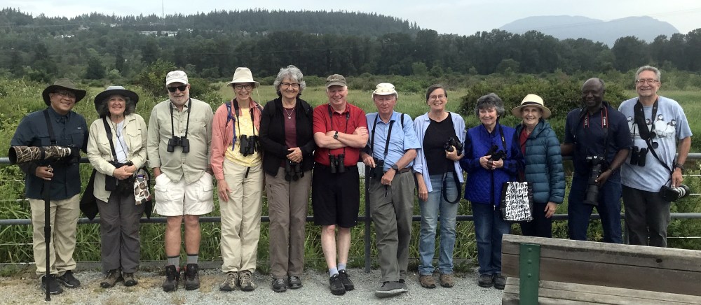 Twelve birders met at Colony Farm in Coquitlam on a cloudy, cool morning – (left to right) – Russel, Jacquie, Bob, Lee, Lidia, Alan, Roger, Dottie, Lorna, Lorraine, Jonathan and Terry.