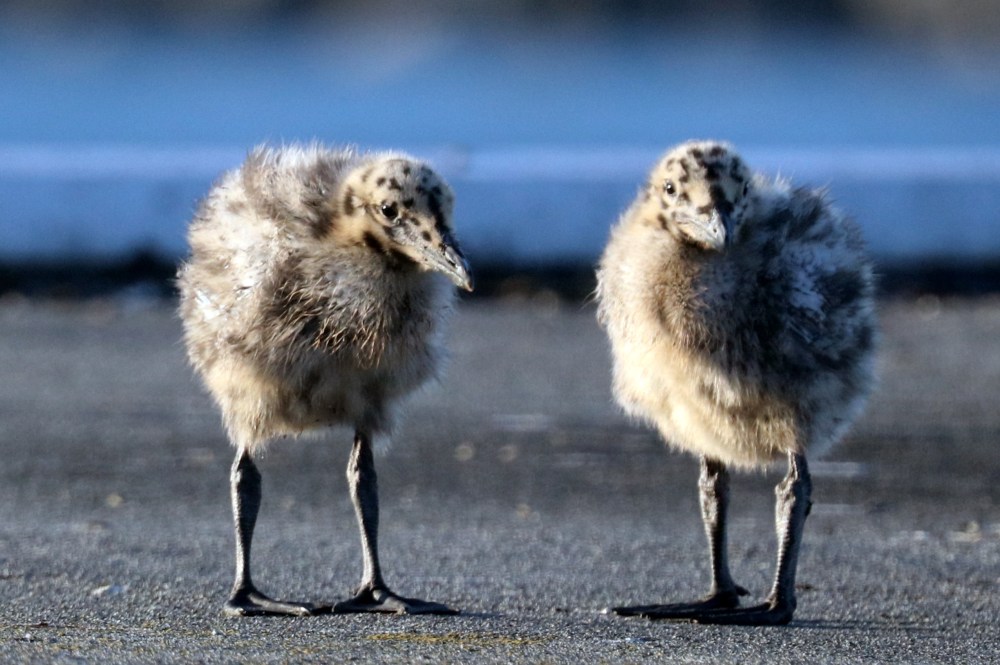 Five Delta Nats met in the Tsawwassen ferry terminal for the 7am ferry to Swartz Bay – Lidia, Margaret, Lee, Lorna and Terry. From the windows on the walkway to the passenger waiting room we saw several very cute gull chicks on the roof. From the ferry we could not see the Brown Pelicans that had been reported on the breakwater. But Lidia spotted one swimming very close as the ferry pulled out.