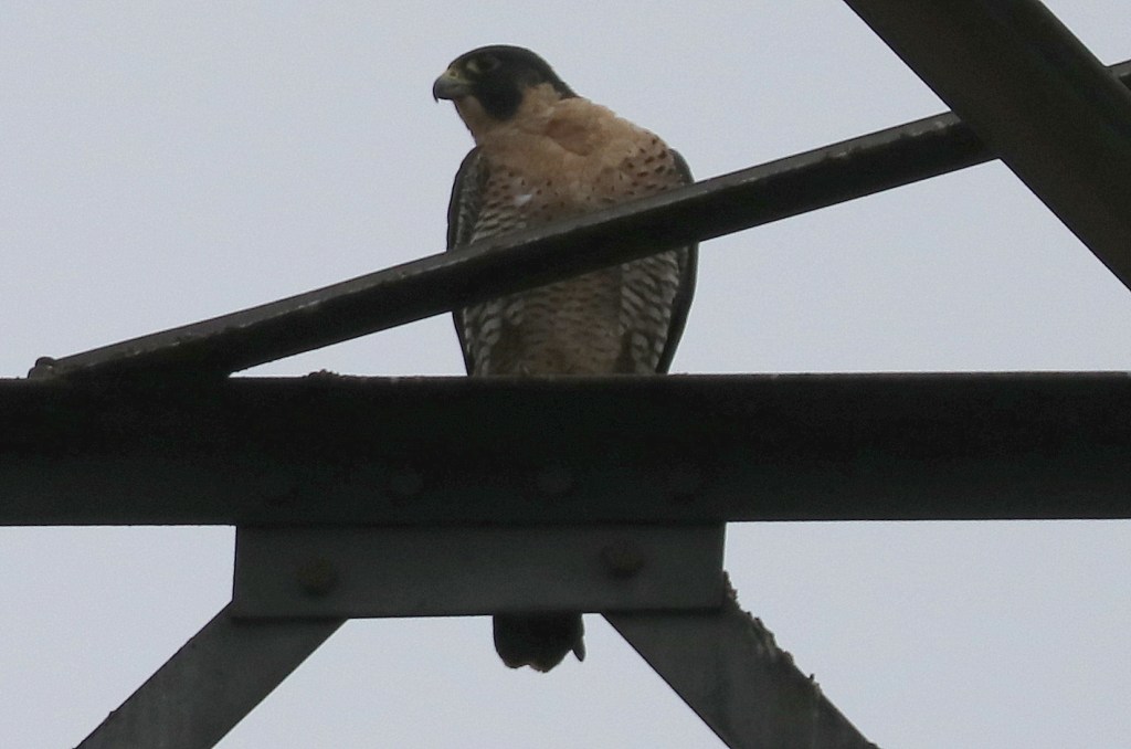 A gorgeous Peregrine Falcon was posing on a hydro tower. It made a brief flight before returning to the same tower. Continuing our walk, we added a Northern Harrier, Red-winged Blackbirds, Eurasian Collared-Doves and a small flock of Greater White-fronted Geese. A huge murmuration of Starlings landed on some hydro towers – completely covering whole sections. Along the marsh we saw fresh beaver cuttings and added Northern Shoveler and Bufflehead to our list.