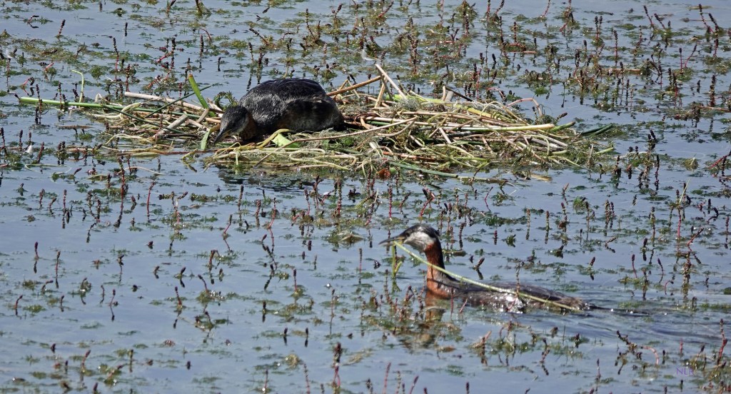 On our way out, we stopped to admire a nesting pair of Red-necked Grebe and a Cinnamon Teal indulging in a thorough bath. The final new bird for the day: a single Feral (Rock) Pigeon hanging out on a power line. Hey, they count for the list!