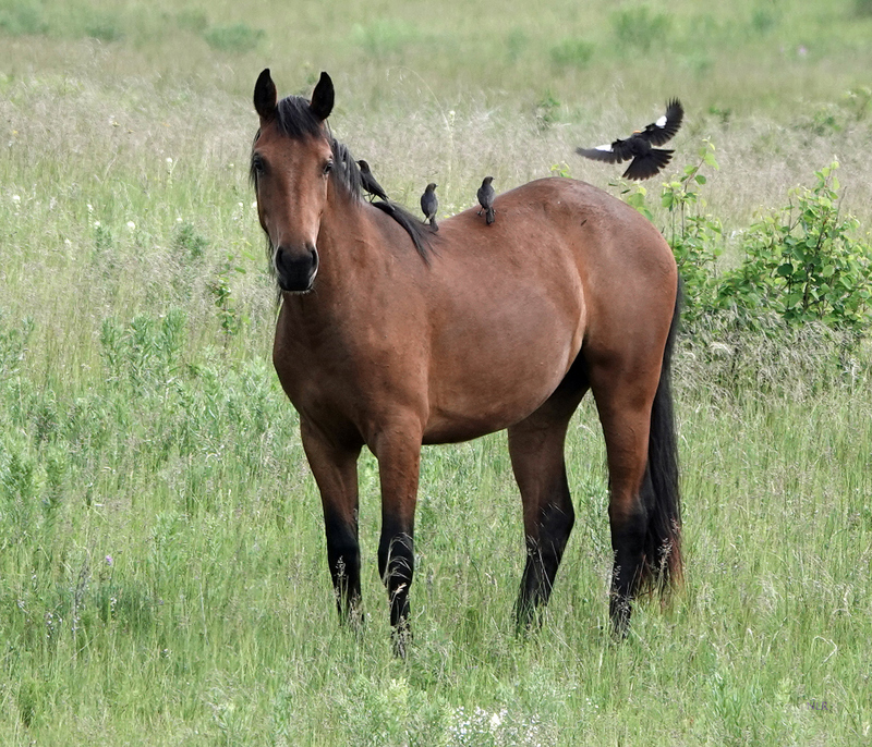 At the turnaround point, a small herd of horses regarded our party with curiosity, a flock of Brown-headed Cowbird on their backs. A pair of Pine Siskins flew overhead, and Western Meadowlark sang their sweet, rich jumbled songs, juxtaposed by the harsh twittering of Marsh Wren. Finally, on the way out of Walker Valley, we added American Kestrel to the list, a lovely complement to the Merlin we had seen on the way into the valley earlier that morning.