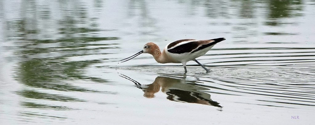 The trail terminated in a series of mineral-rich lakes, where close to 10 (counted) breeding American Avocets fiercely guarded their territories. Here, we spent a lovely hour or so watching the avocets chase any other shorebird who came remotely close to their territory, including Spotted Sandpiper of which there were at least a dozen, and Killdeer. Several of us continued along the lake and, at one point, watched a Killdeer put on the “broken wing” performance of its lifetime, flaring out its tail feathers to show its rust-colored rump in an effort to distract us from its nest or its young, which we never saw.
