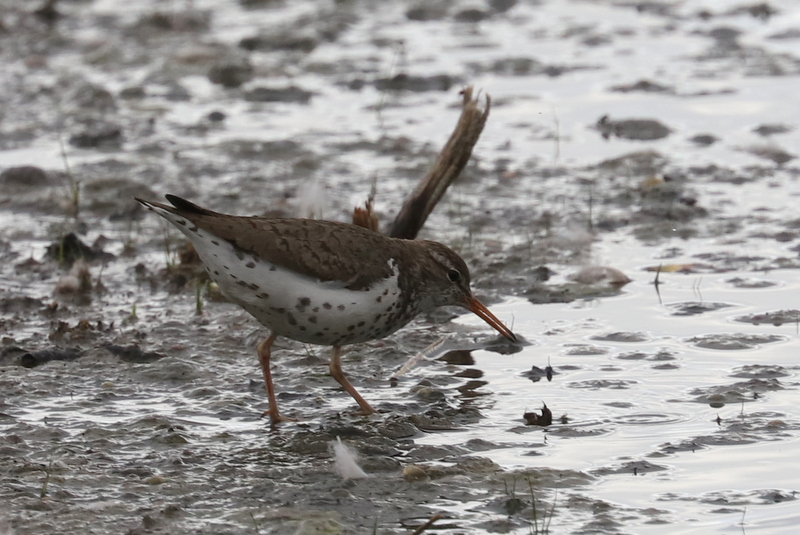 Thirteen of us braved the rain to walk along Watson and Elliot Lakes. These 2 small lakes have been the most productive for water birds and they did not disappoint. Coots with chicks were the most common. We added Canvasback chicks to our list of chicks, and three Wilson’s Snipe flew out of the reeds at Wilson Lake. At Elliot Lake we had close looks at Solitary and Spotted Sandpipers side by side – and more baby Killdeer.
