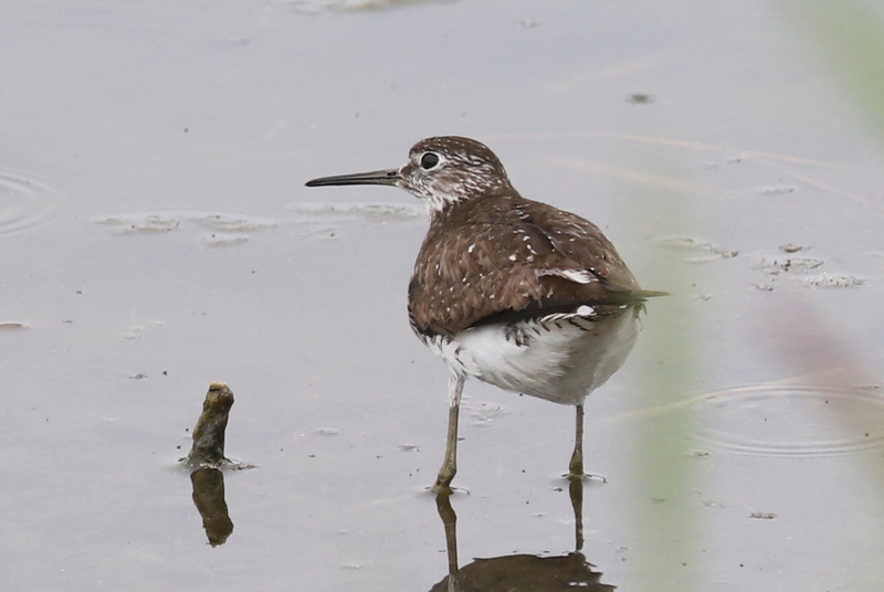 As our group enjoyed a particularly fruitful section of the river, a lone sandpiper attracted our attention. While tempting to assume it was another Spotted, there was something different about it: its back was heavily spotted and it sported a bold white eye-ring. The bill was longer, slimmer and dull, not orange. Triumph! A Solitary Sandpiper living up to its name! (An endearing quirk of the Solitary Sandpiper that sets it apart from the similar-looking Spotted Sandpiper is its tendency to “hiccup”—bob its head and shoulders—while the Spotted Sandpiper bobs its tail.)