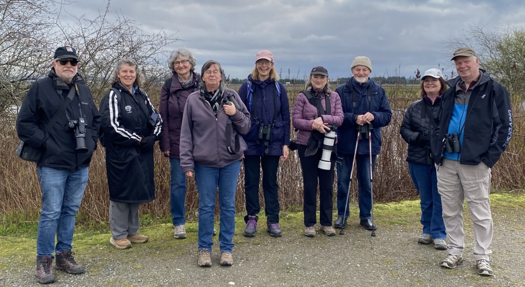 Ten DNCBers met at the Serpentine Fen parking lot on a very nice morning – Bob, Christine, Lidia, Dottie, Lee, Pat, Gareth, Liz, Alan and Terry. The resident Kingfisher did not appear at the beginning or the end of our walk. There were White-crowned Sparrows and several Eastern Grey Squirrels near the parking lot. Several large flocks of Canada Geese and gulls flew over.
