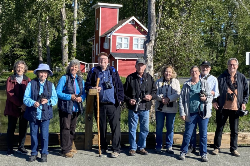 Christine then took us to Hawthorne Grove Park on Arthur Drive, beside Kirkland House. This is a delightful little park with a water feature and gardens. There is an active Eagle nest and an Anna’s Hummingbird nest. We also saw Killdeer, White-crowned Sparrows, Bushtits, Robins, Starlings, Song Sparrows, Towhees, Goldfinch, Tree Swallows, Barn Swallows, Mallards and Herons. We heard but did not see Common Yellowthroats. Christine took us into the basement of Kirkland House to see the model railway display.