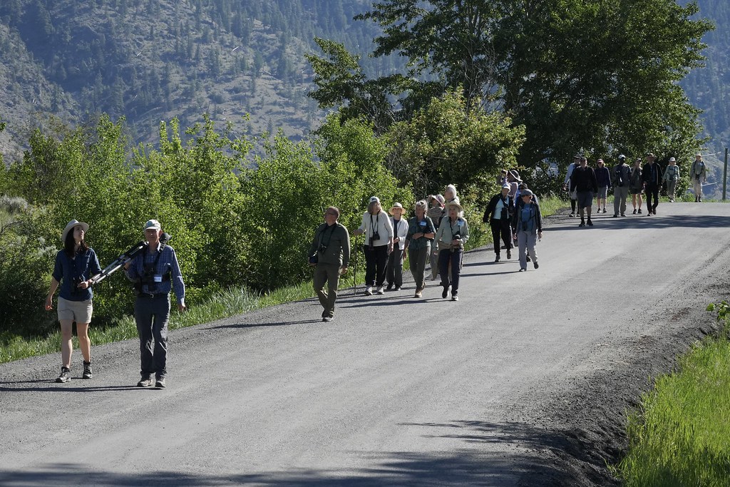 Right away, we were drawn from the cars towards the birdsong emanating from the creekside forests. A Hammond’s Flycatcher whee-zipped, Nashville Warblers warbled, and Lazuli Buntings burbled and trilled. One-by-one, we hunted them down and were rewarded with clear sightings. High up in the cerulean sky, Red-tailed Hawks, Common Ravens, and Bald Eagles soared (separated by great distances, of course).