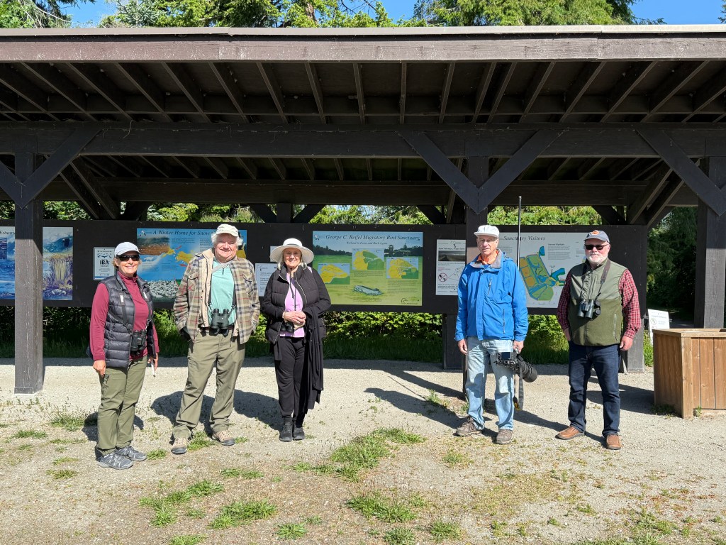 We got to Reifel Bird Sanctuary at 9 and were met by David and Gabriele. Gabriele heard about our walks from the Surrey/White Rock club. In the parking area we heard Cedar Waxwings again and Yellow Warblers.