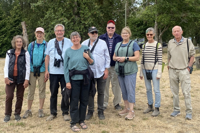Nine Delta Nats met at Deas Island Regional Park – Dorothy, Lee, Terry, Dottie, Bob, Mike, Connie, Margaret and Roger. At this time of year there were no ducks in the river or the slough. A Spotted Sandpiper flew in and bobbed its tail as it walked along the shore of the river. Several noisy flocks of Canada Geese were practicing for their flights south. We passed the historic Burr House which, in the summer, provides important shelter for a large colony of Little Brown Myotis and Yuma bats. It is one of the largest known maternity bat colonies of its kind in BC.
