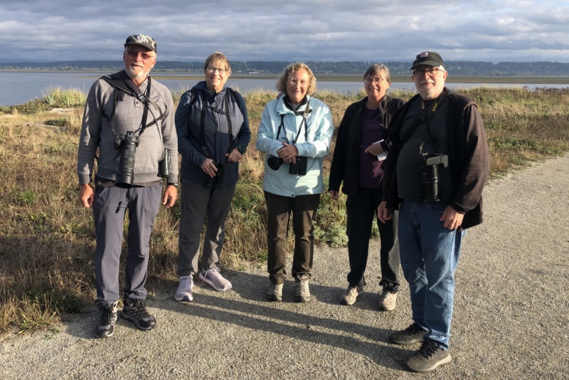 Five Delta Naturalists met (casually, of course) in the Blackie Spit parking lot on a beautiful morning: Bob, Dottie, Connie, Colin and Susan. Given that there had been heavy rain the day before and more was predicted in the evening, we felt lucky to feel the sun on our faces and see the clouds clearing. If only there were birds.