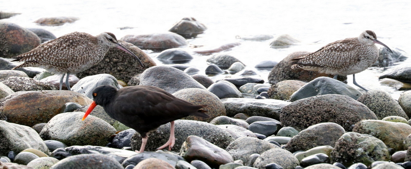 Lorna and I (Terry) met Glen on the Tsawwassen ferry causeway at 8am in bright sunshine. The tide was high and the water was calm. Near the shore were 3 diving Horned Grebes. Farther out were Surf Scoters, White-winged Scoters, Cormorants and a Common Loon. On the spit were Turnstones, Dunlin and Black-bellied Plover. On the south side of the causeway were more Horned Grebes, Common Loons and Cormorants along with Harlequin Ducks. On the shore was a group of about 40 Black Oystercatchers and a large mixed flock of gulls – Glaucous-winged, Ring-billed, Short-billed, Olympic and a Bonaparte’s. Two Whimbrel were mixed in with the Oystercatchers.