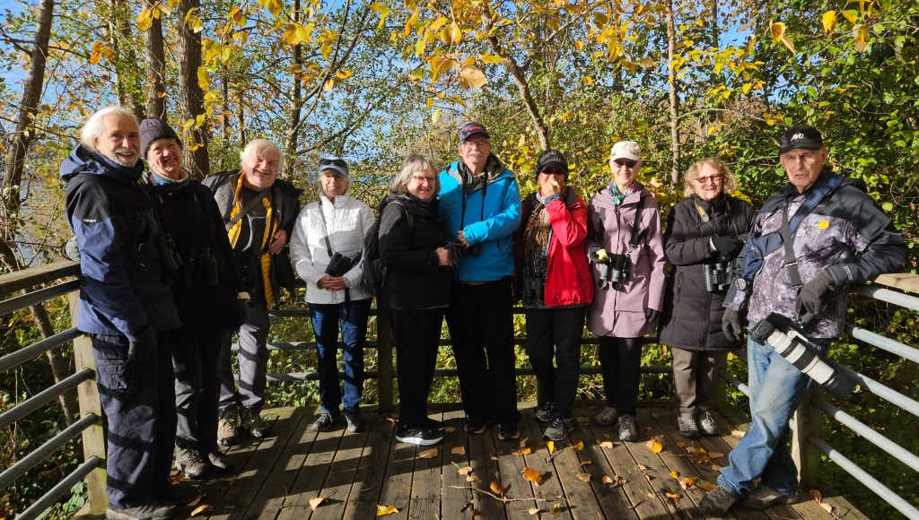 Eleven of us gathered in the parking lot by the caretaker’s house where the feeders had plenty of seed and small birds were taking advantage of this. Glen was going to start with us on Shirley’s trail but not continue far and Margaretha joined us then keeping our total the same. Lynne & Warren, Christine & Douglas, Richard H, Chris McV, Teresa J, Noreen & David, Susan G., Glen B, Margaretha S.
