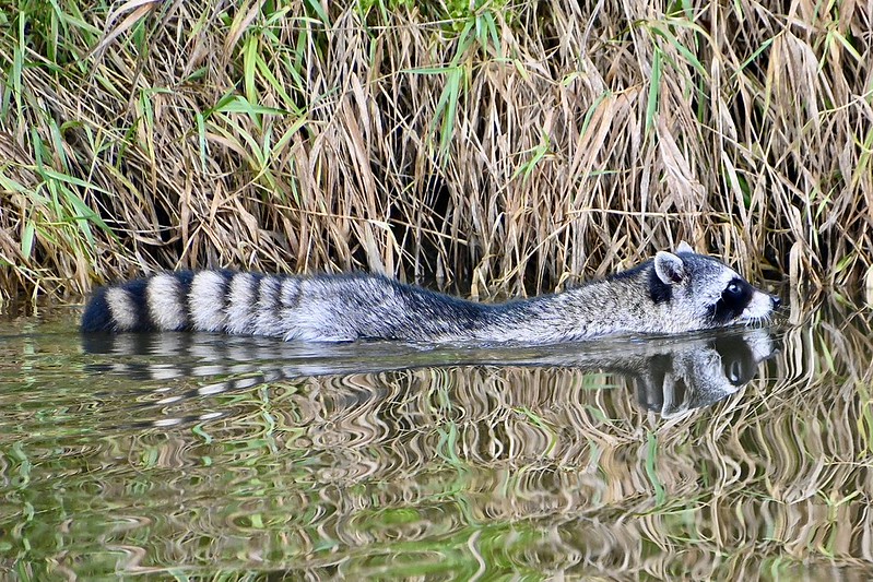 From the hide in the northeast corner we could see Common Mergansers and Hooded Mergansers. In one of the ponds before the tower there was a male Ring-necked Duck – and his neck ring was visible. The more easily seen feature is the white ring on its bill, which distinguishes it from Scaup. Bob found a Downy Woodpecker and Christine watched a Raccoon swimming.
