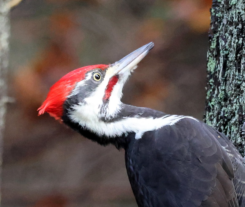 After returning to Second Beach we decided to make our usual drive to Beaver Lake. Due to construction and a movie set there were city police directing traffic. So it did not seem advisable to make our usual U-turn to park at the Beaver Lake entrance. We had to drive completely around the park to approach on the correct side of the road. This turned out to be very lucky. After we parked, Christine heard tapping across the road – there was a Pileated Woodpecker busy working on a tree – very close to us at eye level – and not spooked by us or by the traffic.