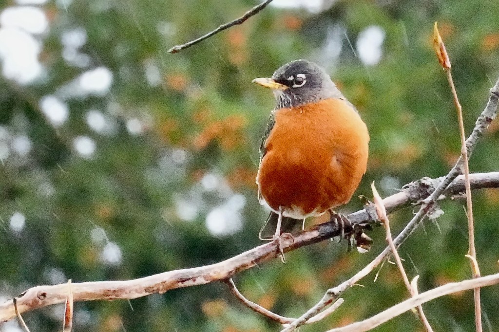 The rain decided to increase in volume as we took the trail into the park. On the lakes were Northern Shovelers, Mallards, Bufflehead, a few Pintail with Marsh Wrens twittering and Red-winged Blackbirds making their usual calls. A lone Greater Yellowlegs strutted its stuff. A pair of Eurasian Collared-Doves were on the power lines. The rain persisted so we increased our pace as it felt like the rain wasn’t going to give up.