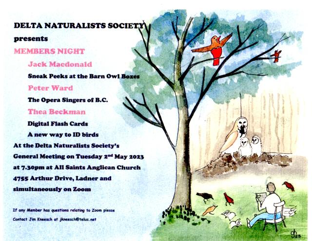 An expert on birds, Peter developed a particular interest in their songs, and wanted to introduce us to the birds of BC that, to him, have the most beautiful songs, hence his title “Opera Singers of BC”.