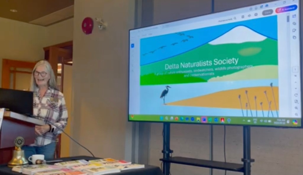 | Sept 12, 2024 – Presentation to Rotary Club by Joni Wright explaining what type of person is a member of Delta Naturalists Society, the history, goals and activities that members are involved in. ![]() |