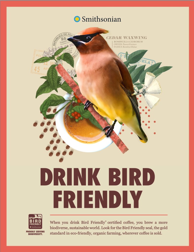 Did you know that the coffee drink can have an impact on the birds in your backyard? The Smithsonian Bird Friendly® certification does more than any other certification to conserve habitat for birds and other wildlife on coffee farms.