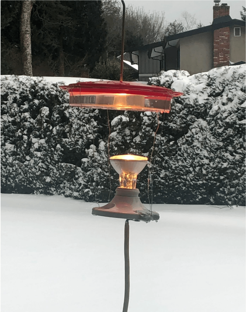2) DNS member – I very quickly made a feeder warmer using a standard clip-on aluminum work light like this one for a feeder like the one below: