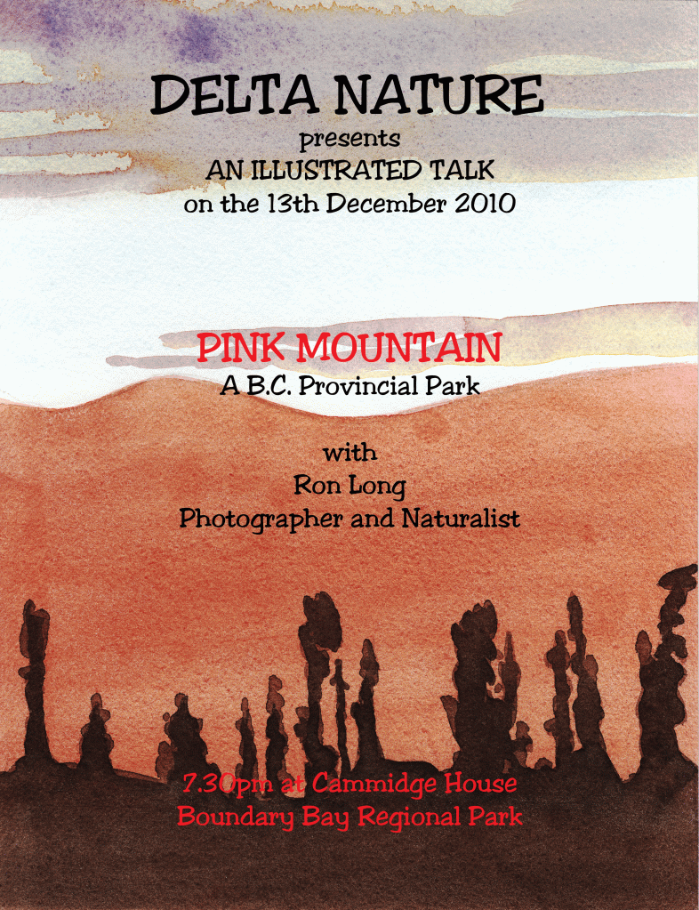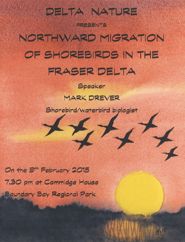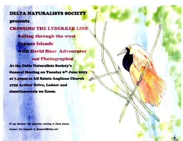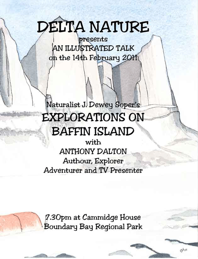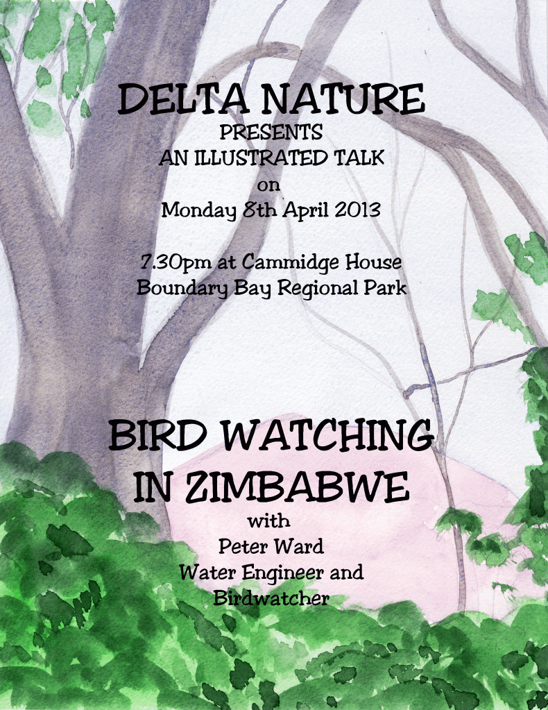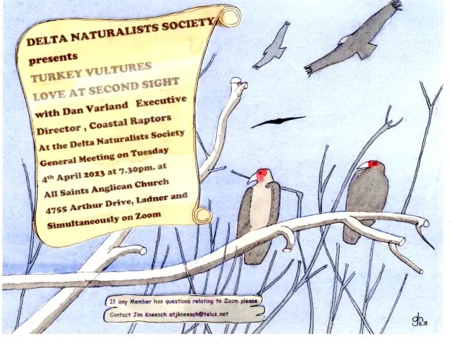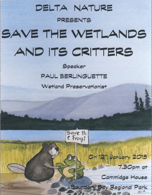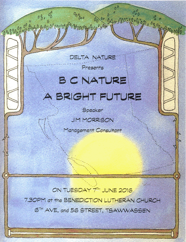 Geof and Jean joined the Delta Naturalists’ Society, and he was asked to create a poster for the October 2006 meeting. Geof has produced a poster to illustrate the theme of the speaker for every DNS monthly meeting since October 2007. He also designed the logo used by the Delta Naturalists’ Society.