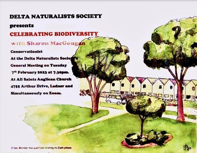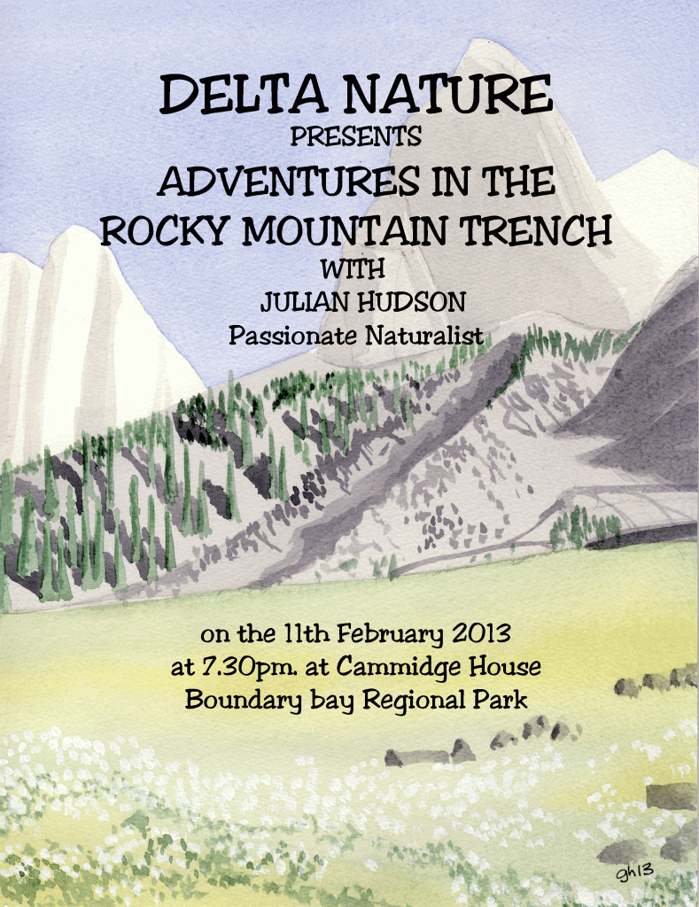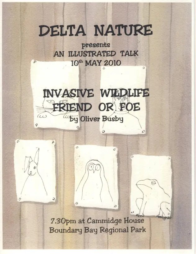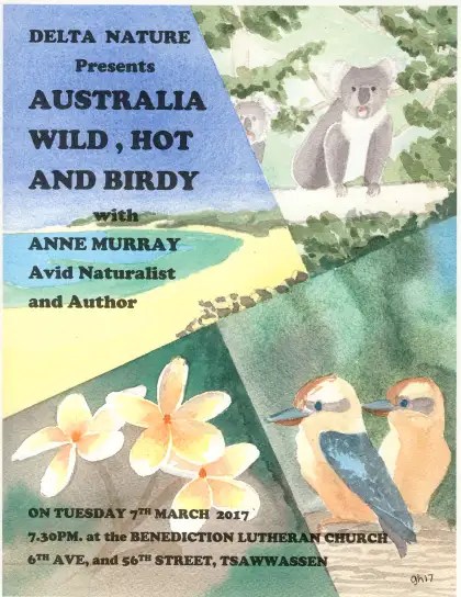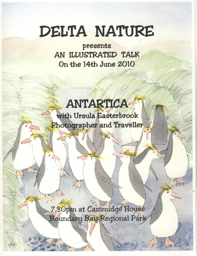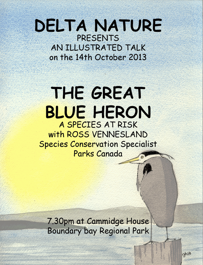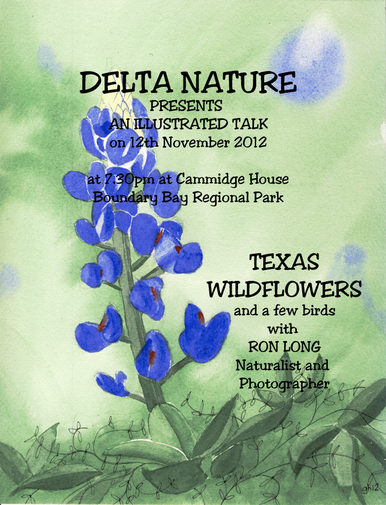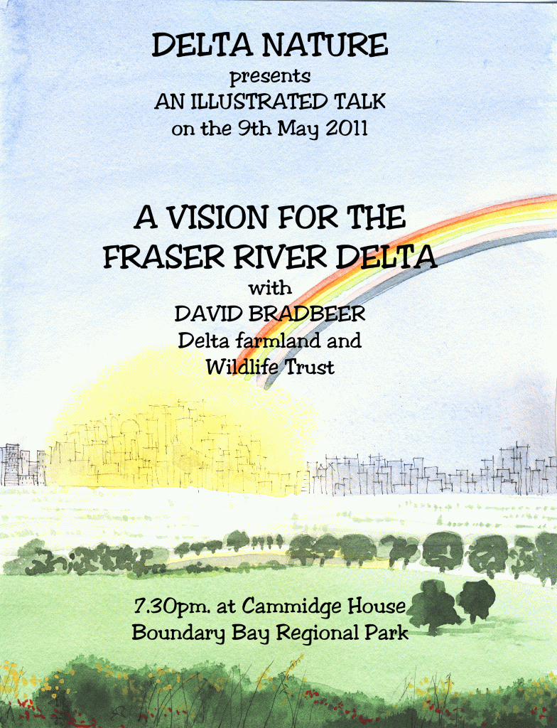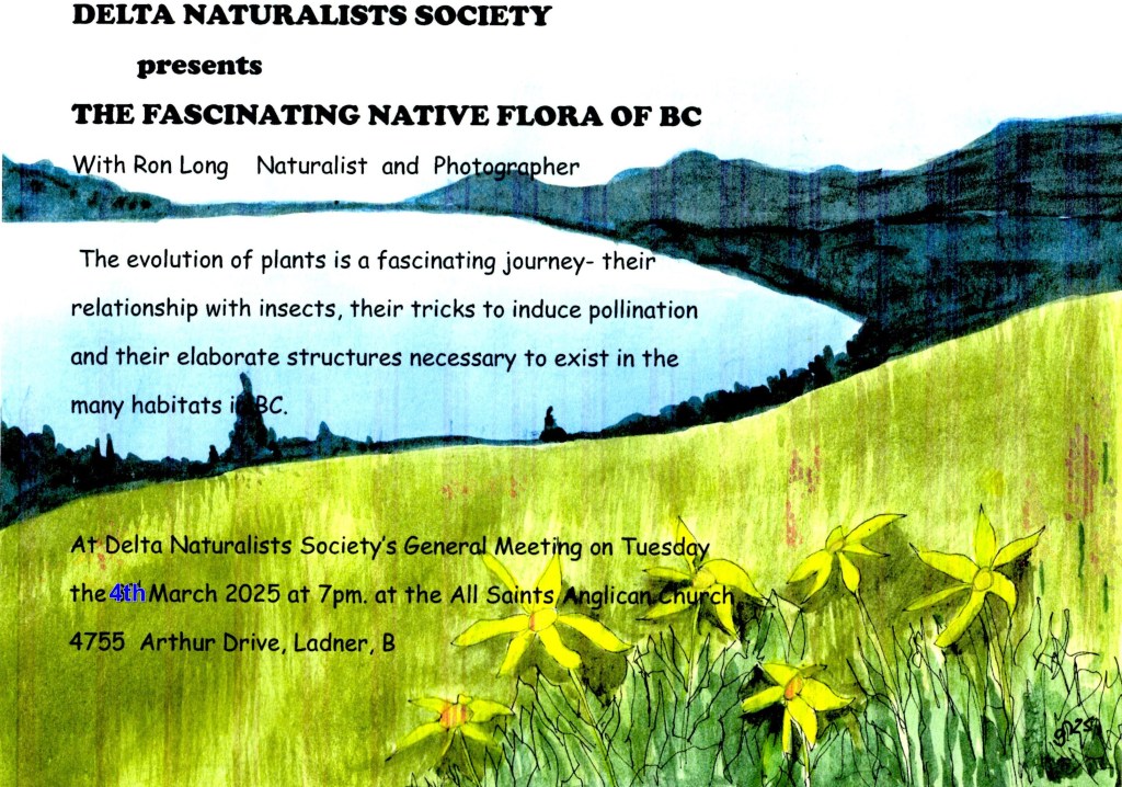 Geof and Jean joined the Delta Naturalists’ Society, and he was asked to create a poster for the October 2006 meeting. Geof has produced a poster to illustrate the theme of the speaker for every DNS monthly meeting since October 2007. He also designed the logo used by the Delta Naturalists’ Society.