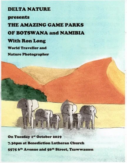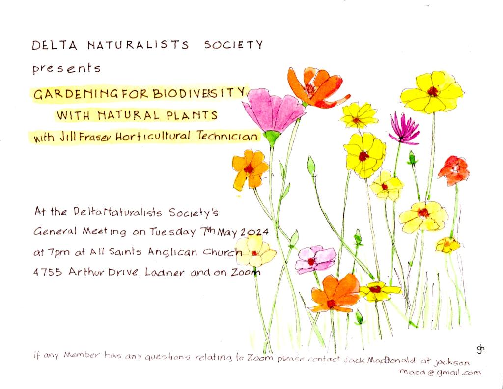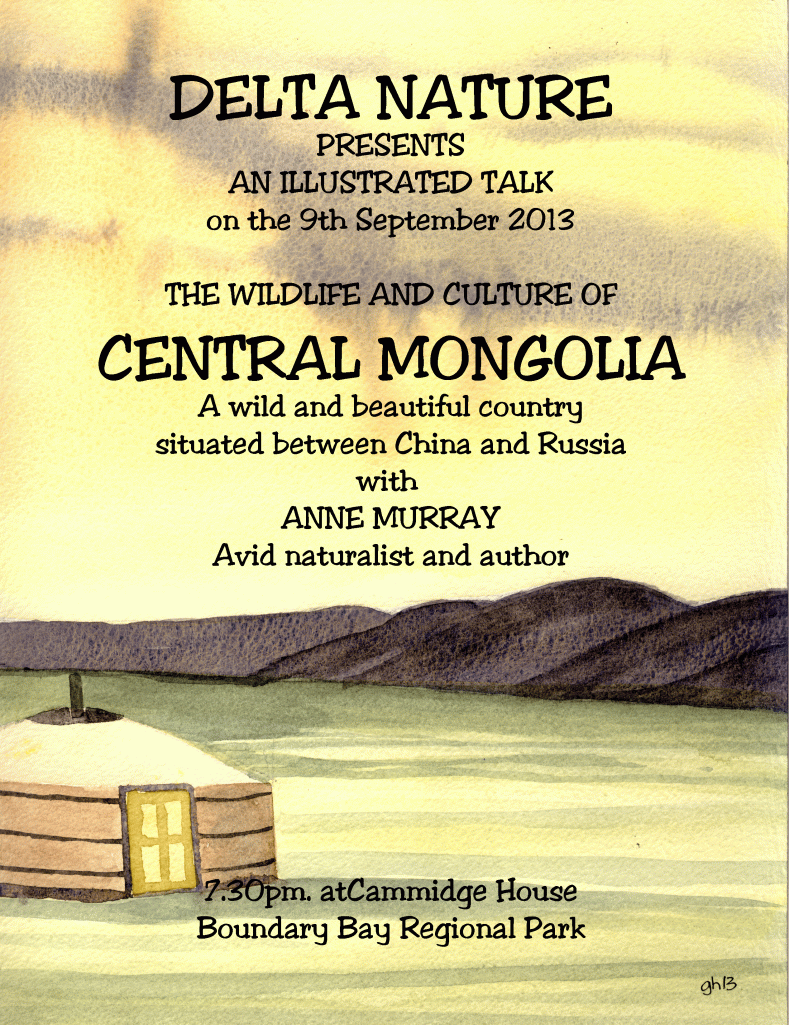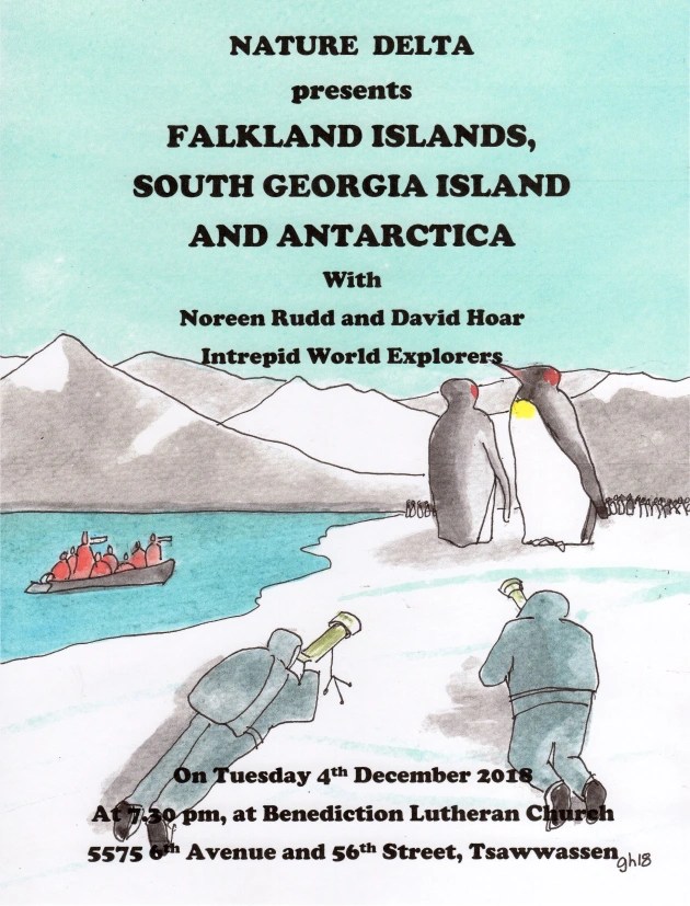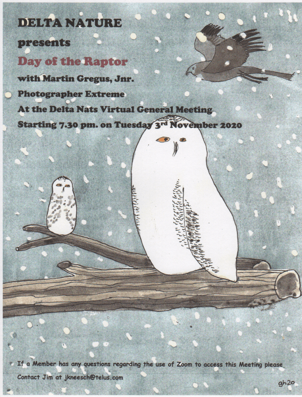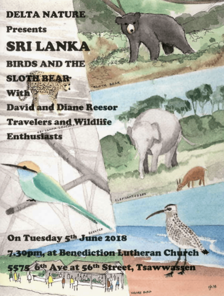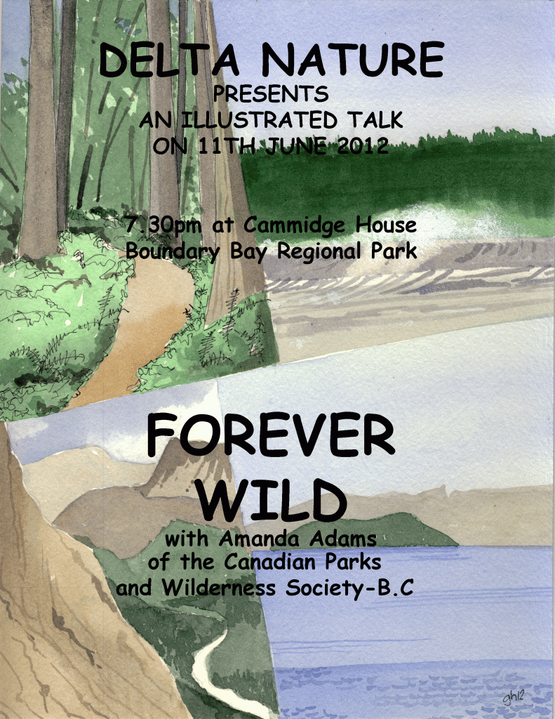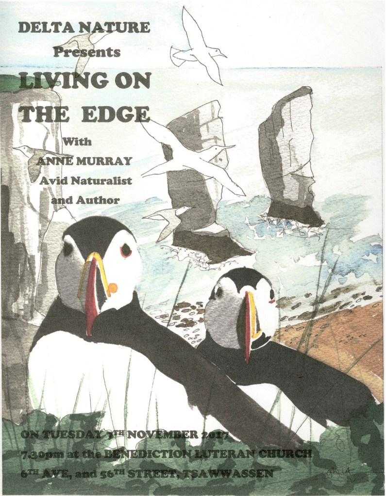 Geof and Jean joined the Delta Naturalists’ Society, and he was asked to create a poster for the October 2006 meeting. Geof has produced a poster to illustrate the theme of the speaker for every DNS monthly meeting since October 2007. He also designed the logo used by the Delta Naturalists’ Society.