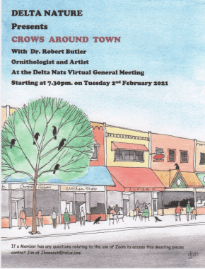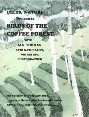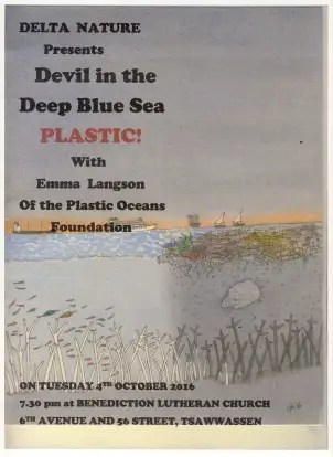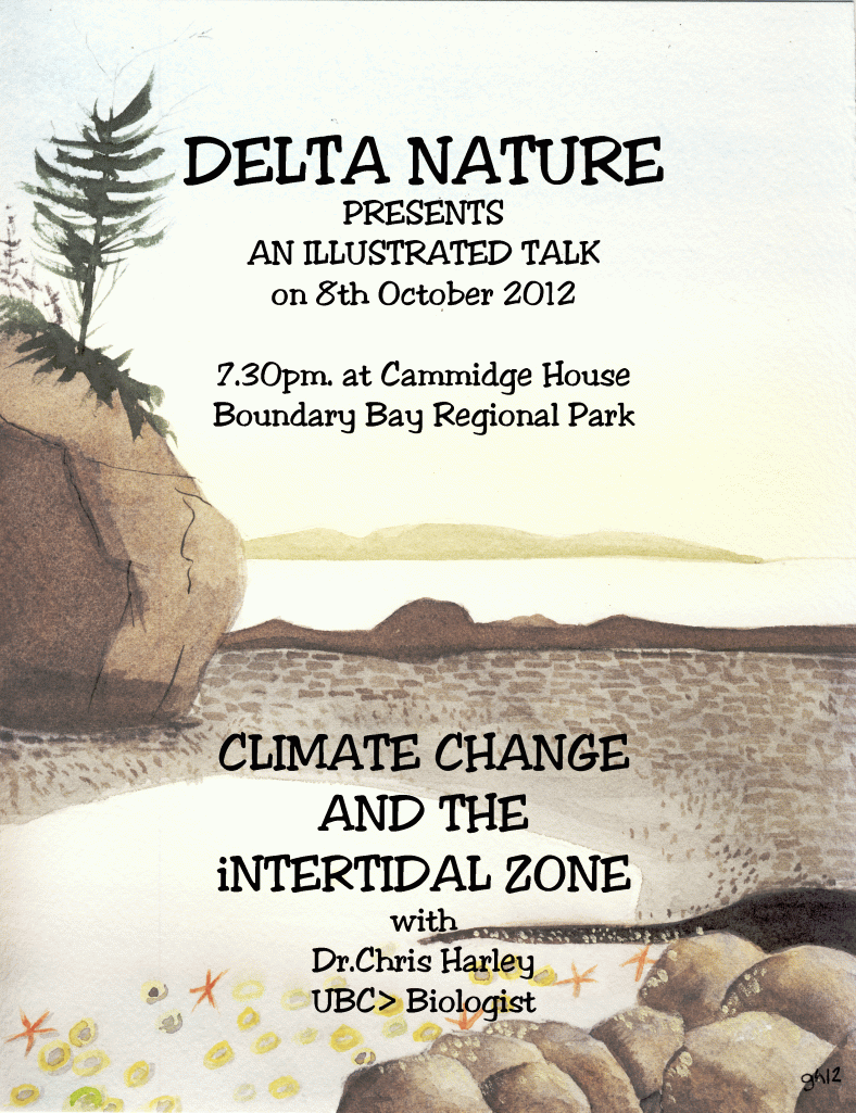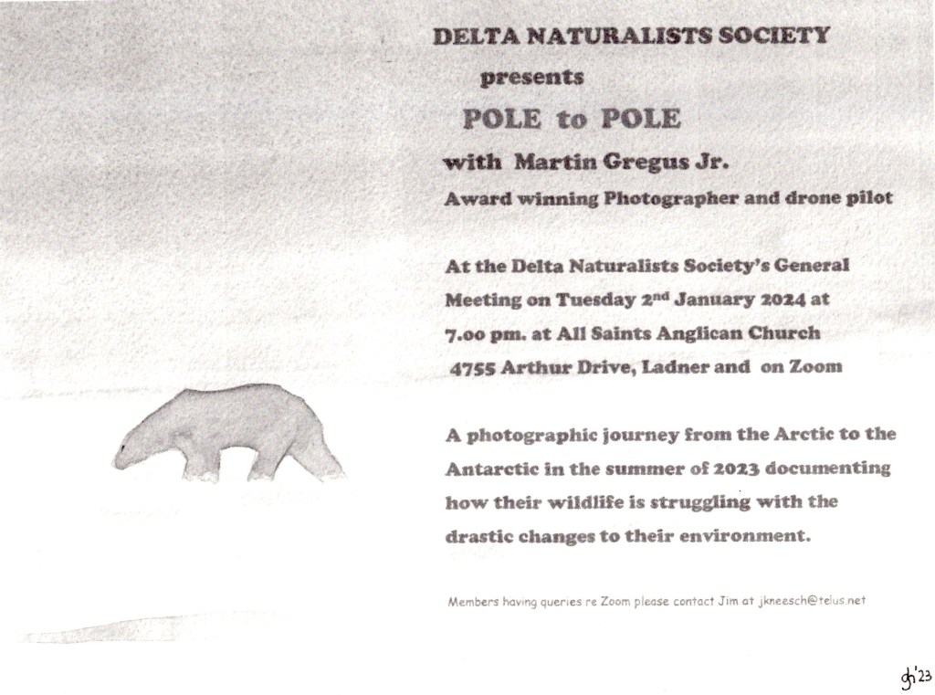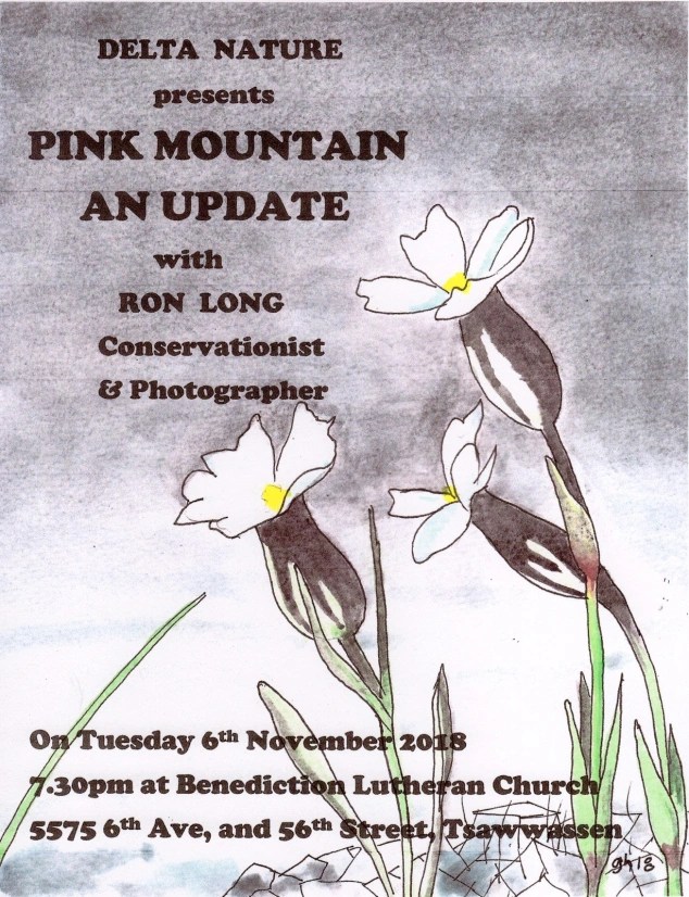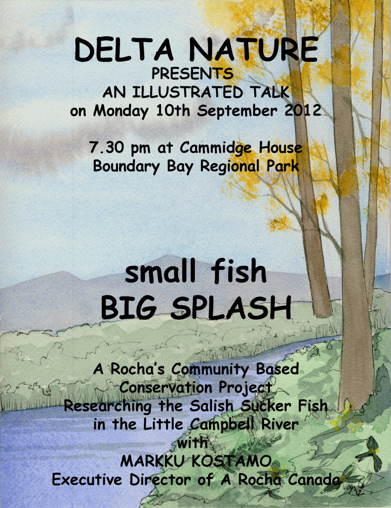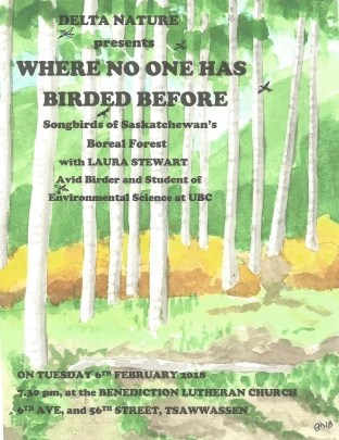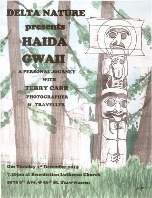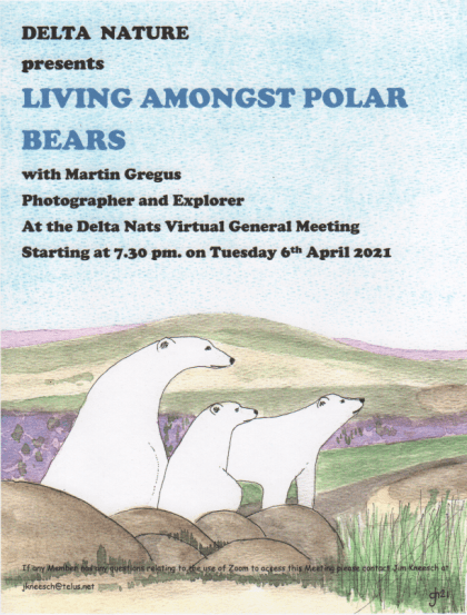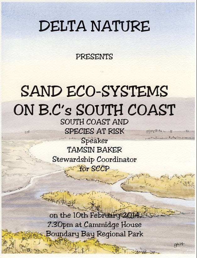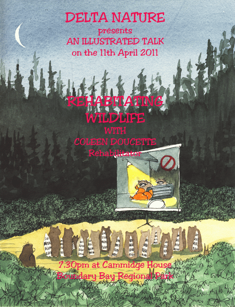 Geof and Jean joined the Delta Naturalists’ Society, and he was asked to create a poster for the October 2006 meeting. Geof has produced a poster to illustrate the theme of the speaker for every DNS monthly meeting since October 2007. He also designed the logo used by the Delta Naturalists’ Society.