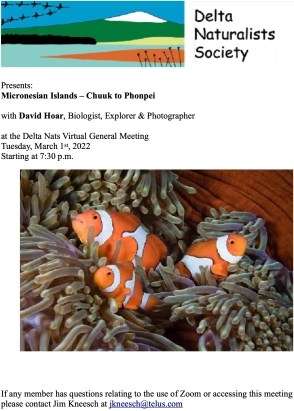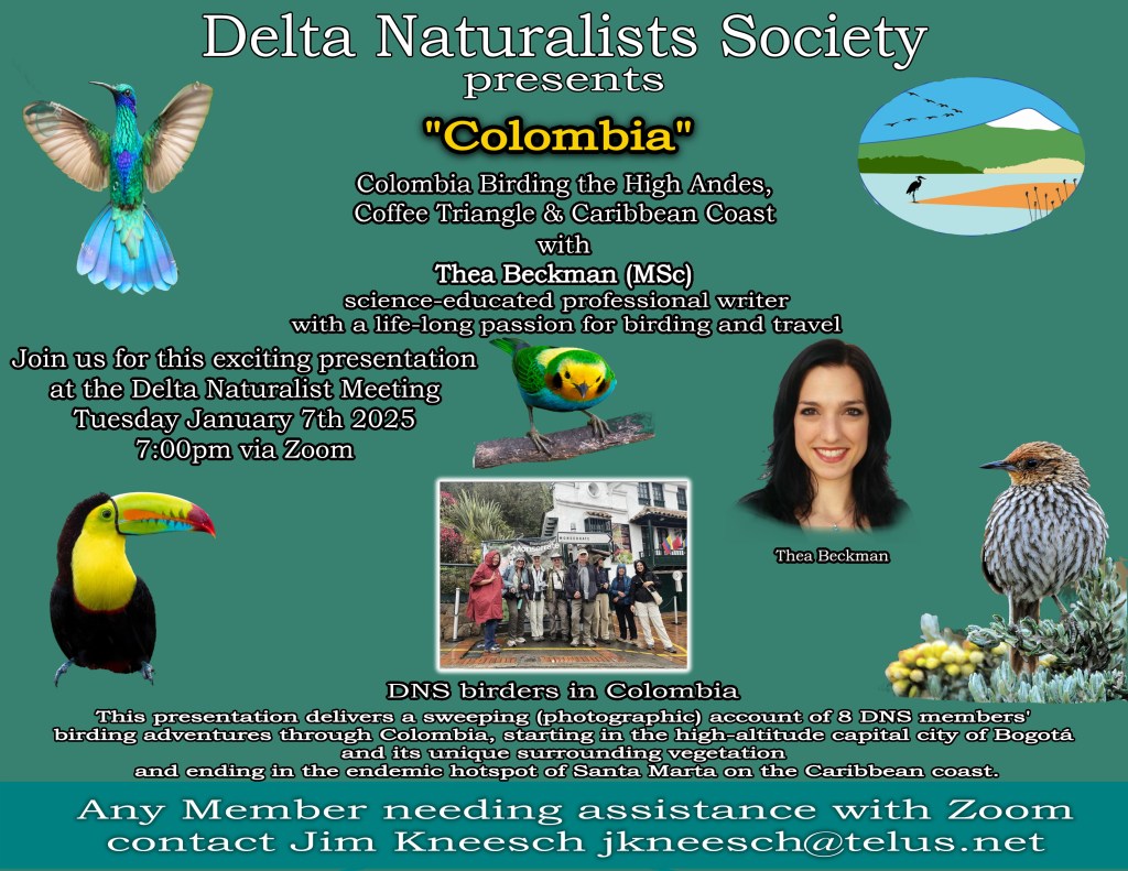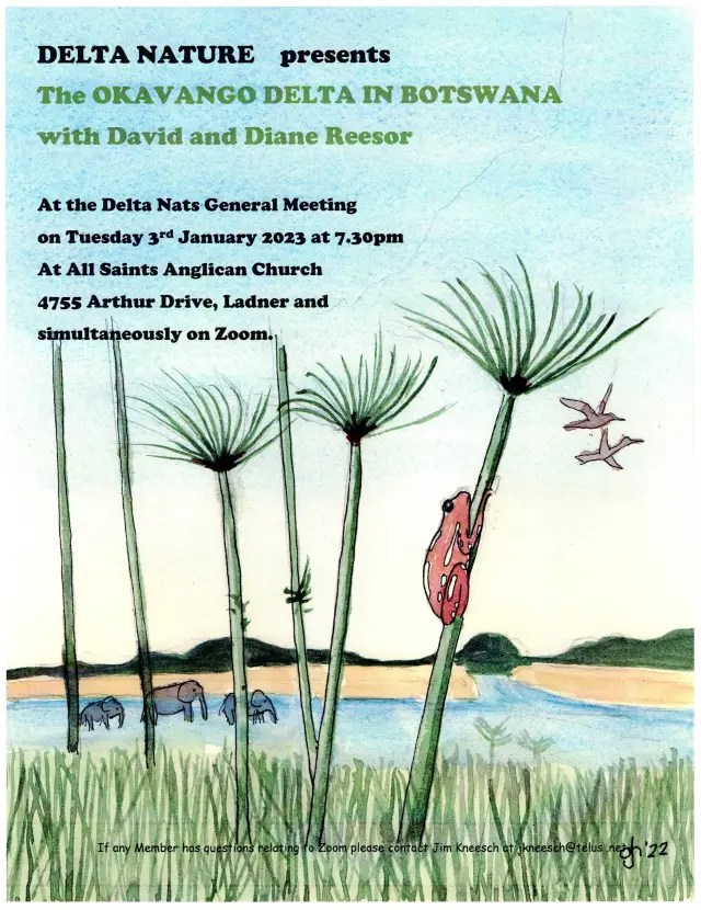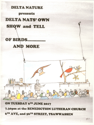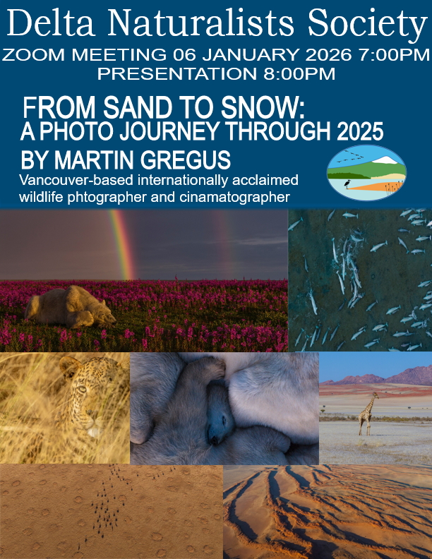 | The pictures below are “thumbnail” versions of Posters created by Geof and Freddie for Speakers (and their topics) at monthly meetings of Delta Naturalists’ Society. Click on any “thumbnail” to enjoy a larger version of that poster; you can then • scroll through the collection (using cursor keys ⇐ or ⇒), or • hit the X (top right) to return to this page |